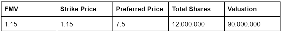 \(\small \text{Company Valuation} = \text{Preferred Stock Price} \times \text{Number of Shares} \)Fair Market Value (FMV): This is probably the hardest to understand, but this is the price of a “common stock” in the company. This number is not related to anything specifically about the company and is typically much lower than the preferred share price. It is calculated by an independent auditor through a 409A valuation for tax purposes. Over time this number will converge with the preferred share price which is a big reason late-stage startups switch to RSUs as the upside granted by ISOs diminishes. (This is the number that is used for the $100k NSO limit I mentioned earlier, not the preferred share price)